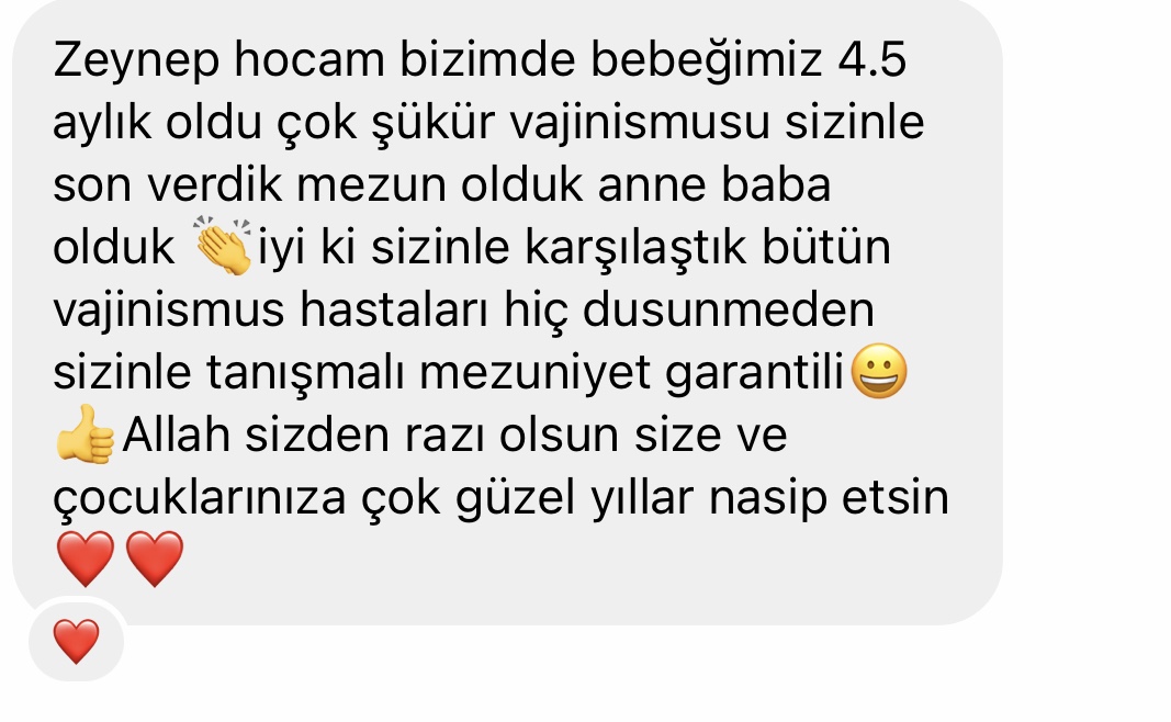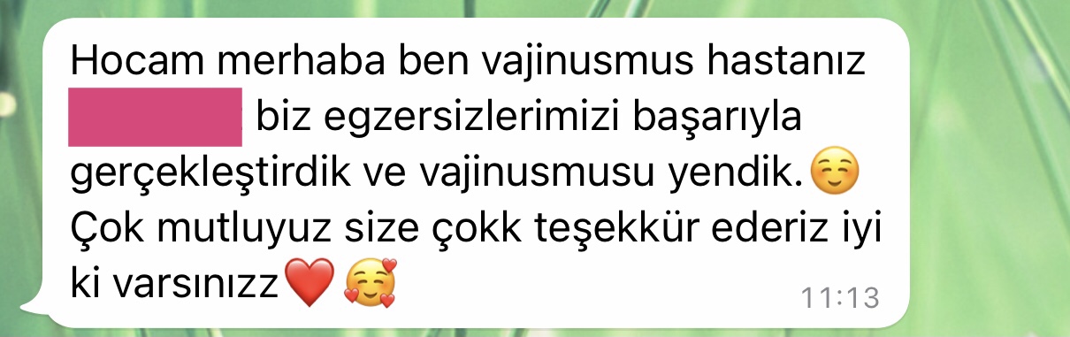 Vajinismus tedavisinde başarı için en önemli nokta, çifti özel olarak değerlendirip çiftin ihtiyaçlarına yönelik kişiselleştirilmiş tedavi programı hazırlamaktır.