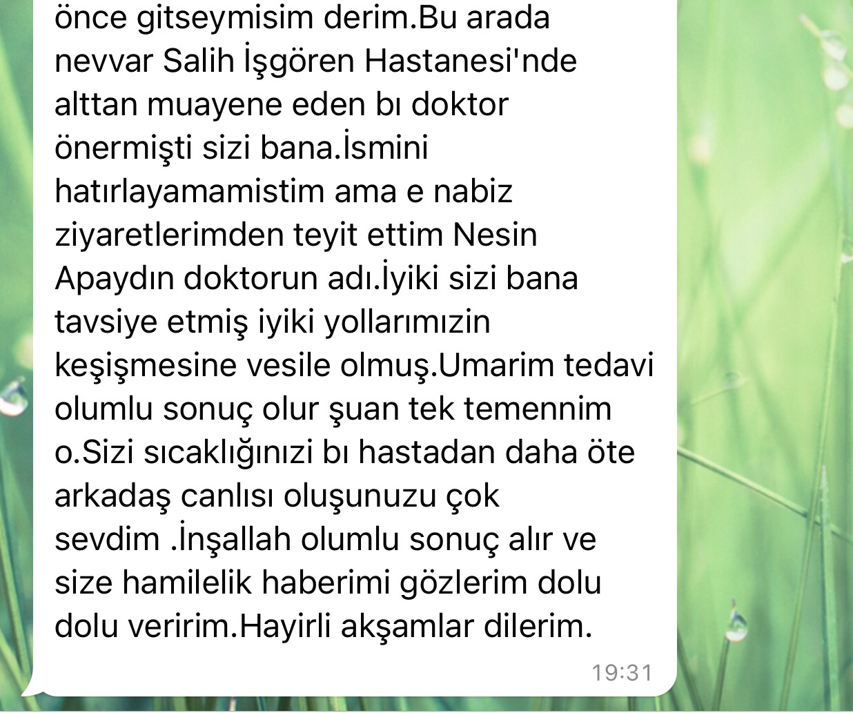 Çifte özel bireyselleştirilmiş tedavi programı sayesinde aşağıda gördüğünüz birbirinden güzel başarı mesajlarını ve hamilelik müjdelerini alıyoruz, bu güzel mesajları aldıkça da çok çok mutlu oluyoruz.